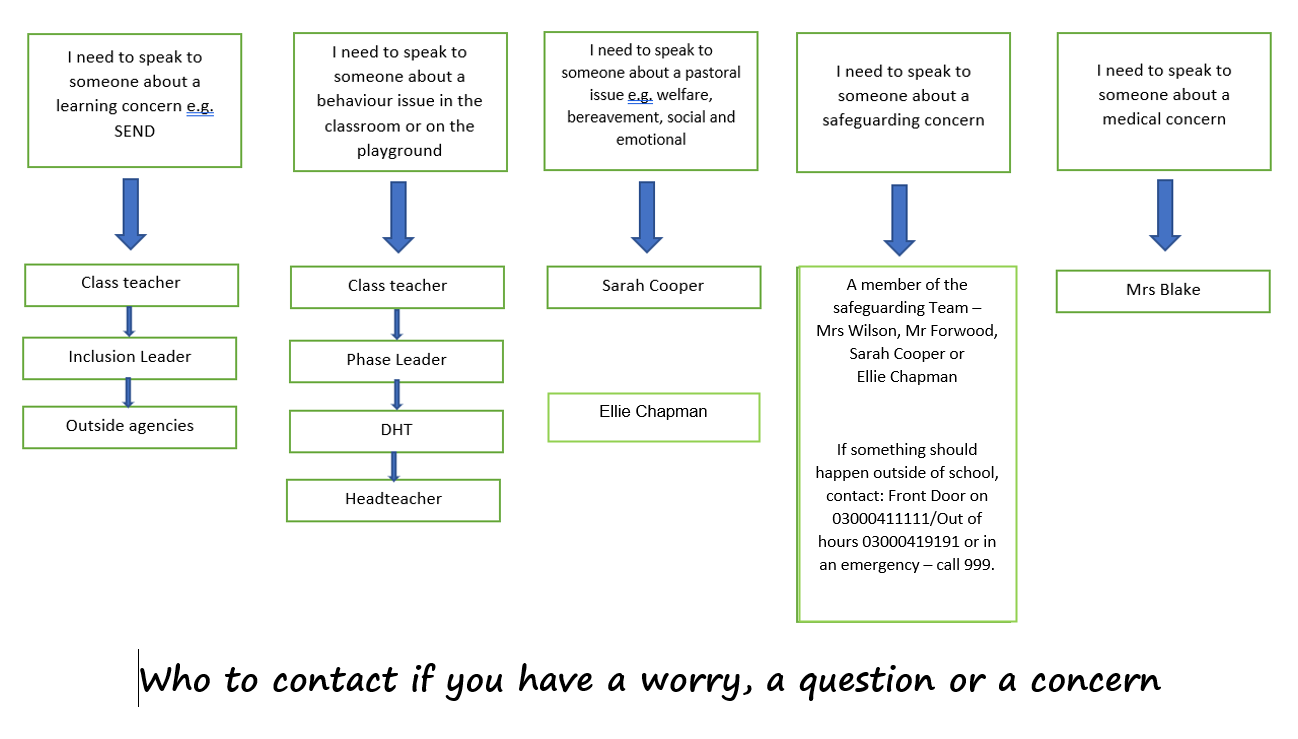 Class teachers are normally available to talk to parents/carers after school. They will do their best to see you straight away but will usually run a club once a week and we have our staff meetings on a Wednesday at 3.30pm. However, they will do their absolute best to see you straight away after school on any other day. You can also speak to teachers over the telephone or send them a quick email and they'll be in touch.