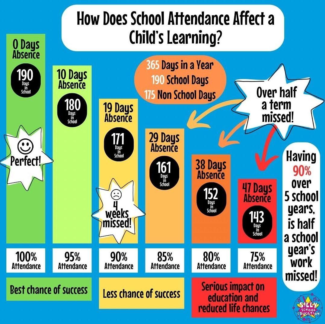 Frequent absences may make it harder for your child to maintain friendships. If your child is often absent, the chances are that they will be slipping behind their friends academically - it will be very difficult to catch them up. Pupils who are late disrupt not only their own learning but the learning of others.