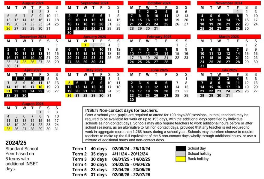 - Monday 2nd September 2024 (first day of the academic year for children will be Tuesday 3rd September 2024).