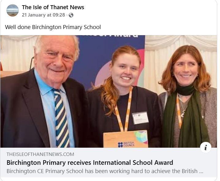 We are so proud of all the hard work and dedication from staff and children here at Birchington to have been achieved this prestigious award!