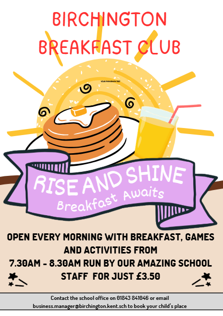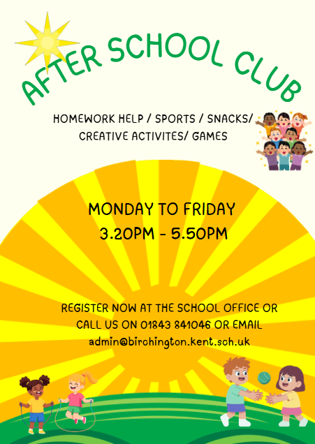 We have our very own on site Birchington Breakfast Club and After School Club run by our own staff. If you would like to make use of these clubs, please contact the school office to book a place or find out more details.