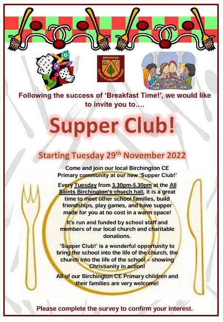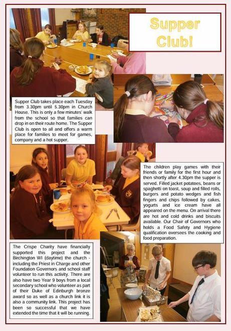 Our local church support our children and families of Birchington CE Primary school by running a really successful Supper Club every Tuesday evening from 3.30pm until 5.30pm.