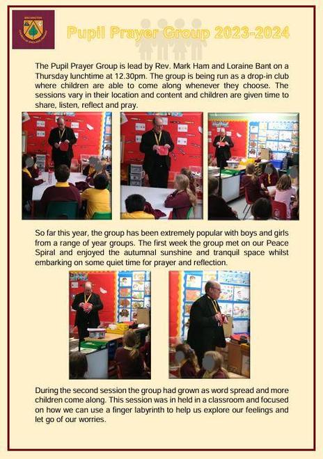 They also come into school to run two very special sessions - staff and pupil prayer groups. we feel very lucky to have two such dedicated Governors who give up so much time to make our school the special place that it is.