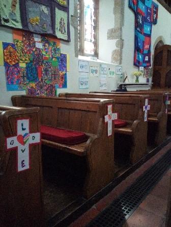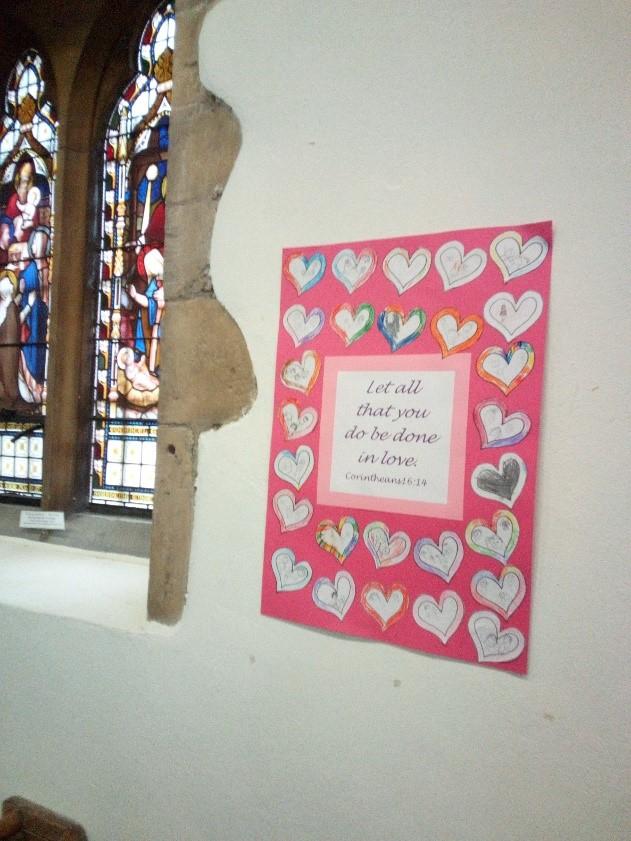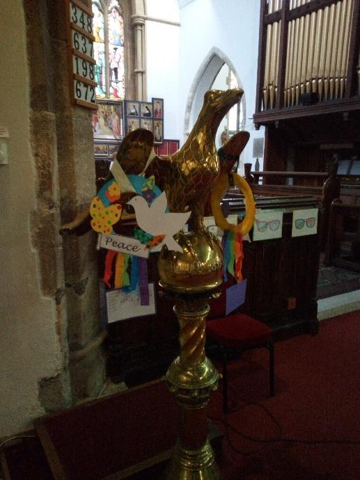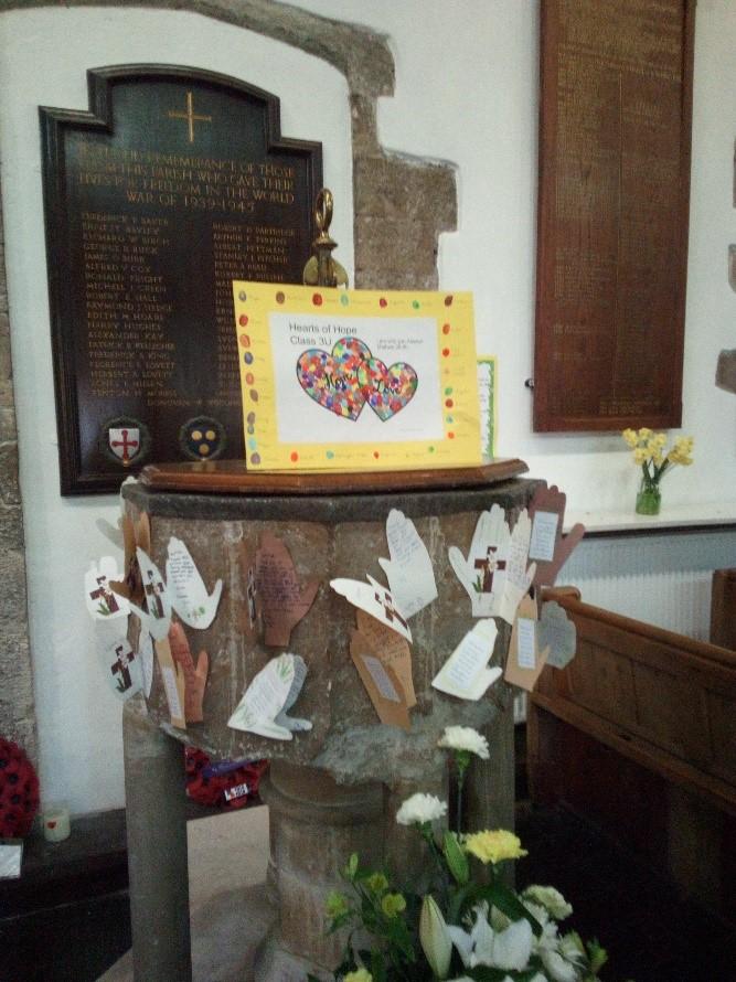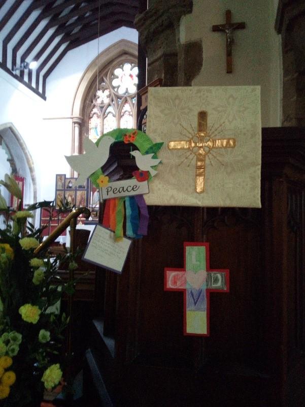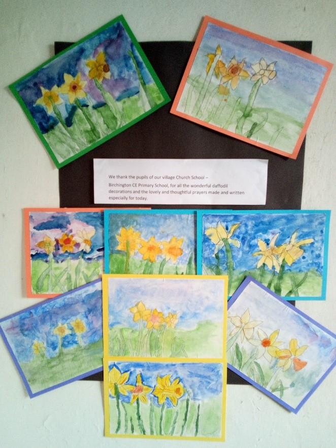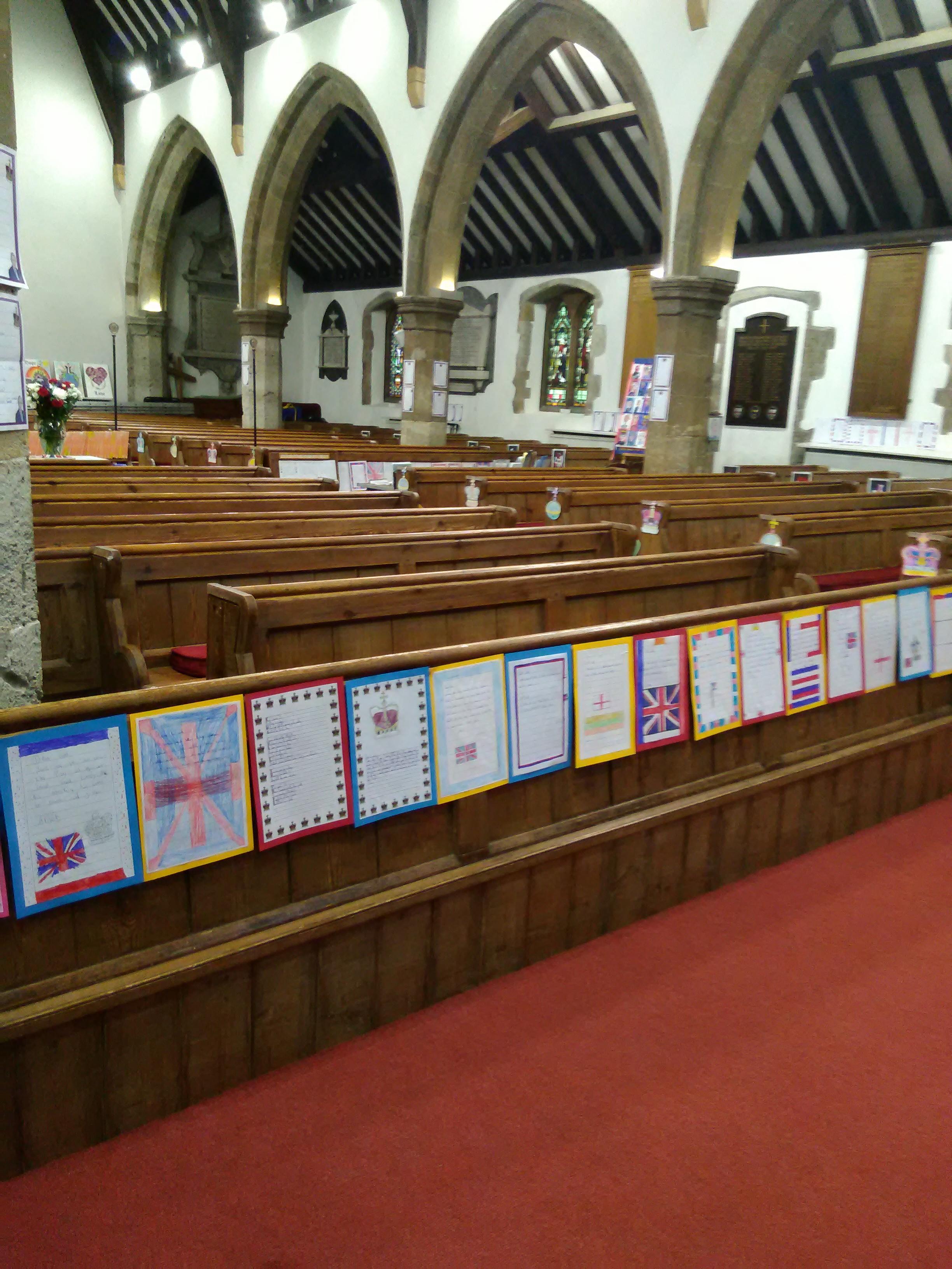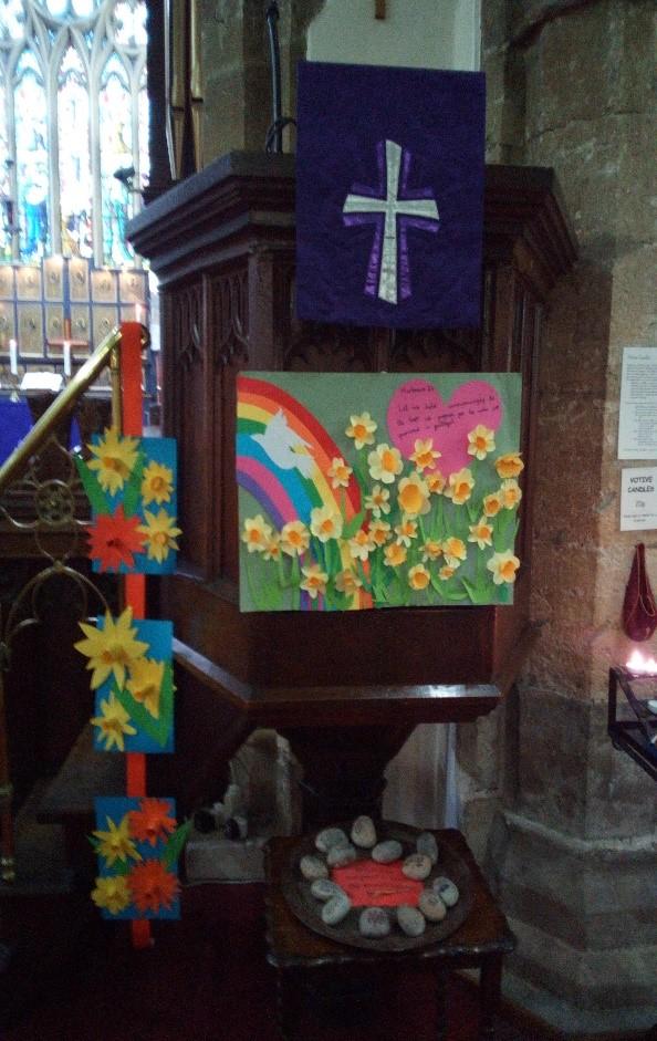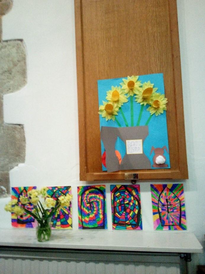 Throughout the year, we use All Saints Church for a number of services and celebrations. These include a family Carol Service, a Key Stage 1 Christingle Service, a Year 4 led Christmas Service, a Year 5 led Easter Service and a Year 6 led Leavers Service. The church is also available to display our pupils’ work use and for class or year group trips to support our RE curriculum. We were involved in two creative projects when our children provide a range of beautiful artwork to decorate the church and prayers to be shared during services. The first in March meant the church was filled with children’s handmade daffodils in all different forms. The second where the church was filled with doves, also in many different forms to celebrate this special time in the Christian calendar. These displays were visited by parents and carers as well as members of the congregation and the local community.