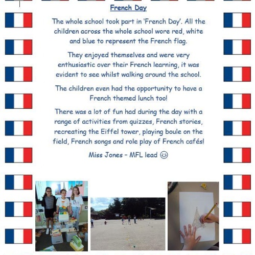 Last year, we had a French theme day with a native French speaker, a teacher from a local secondary school. This provided our children with a valuable real-life experience and the opportunity to hear and communicate with a native French speaker.
