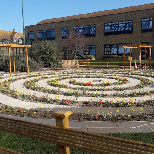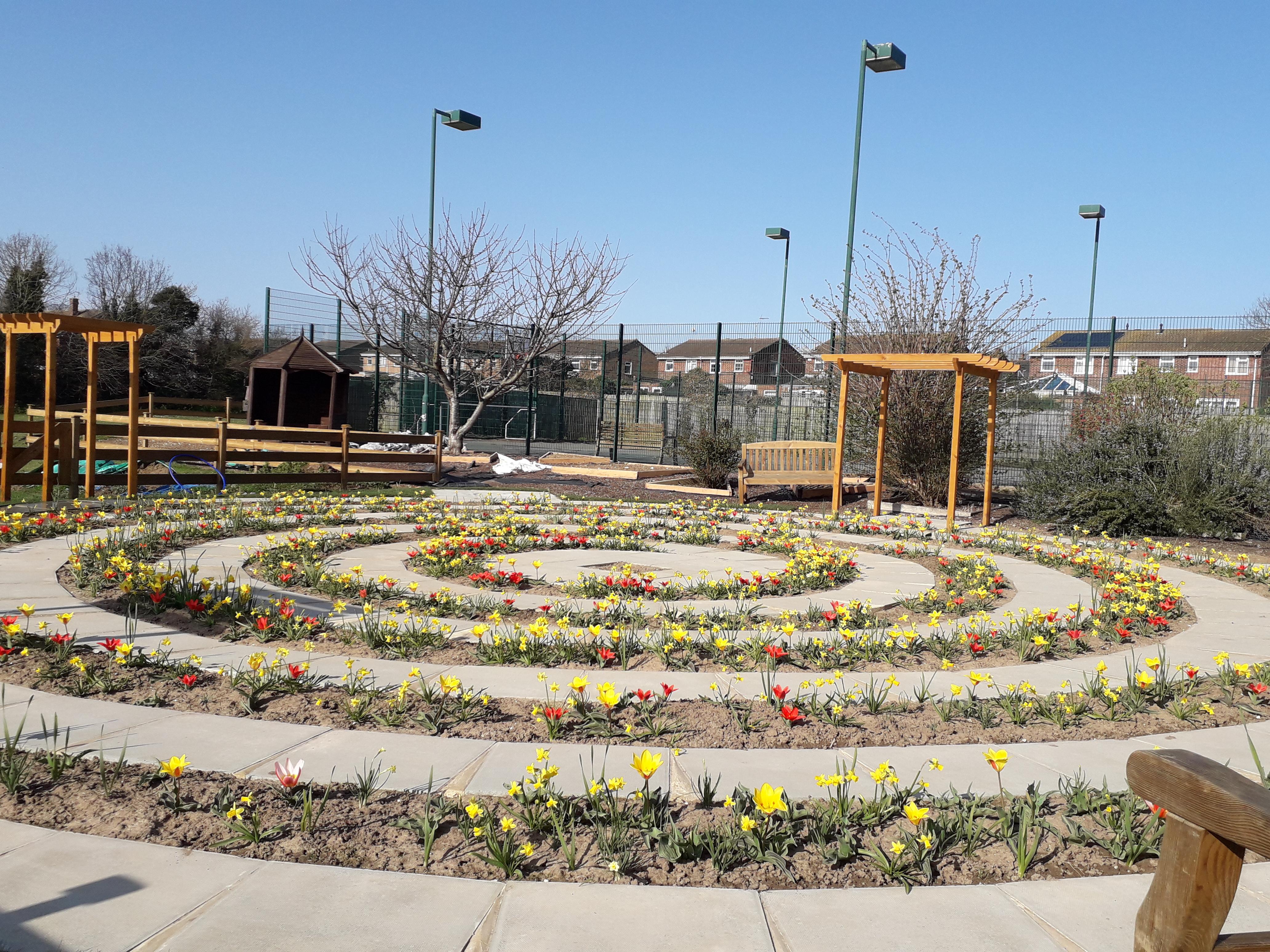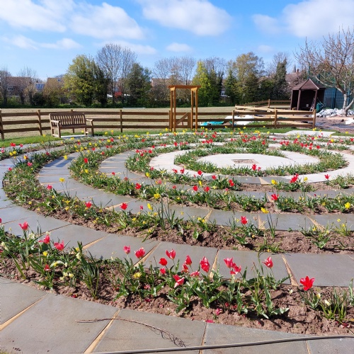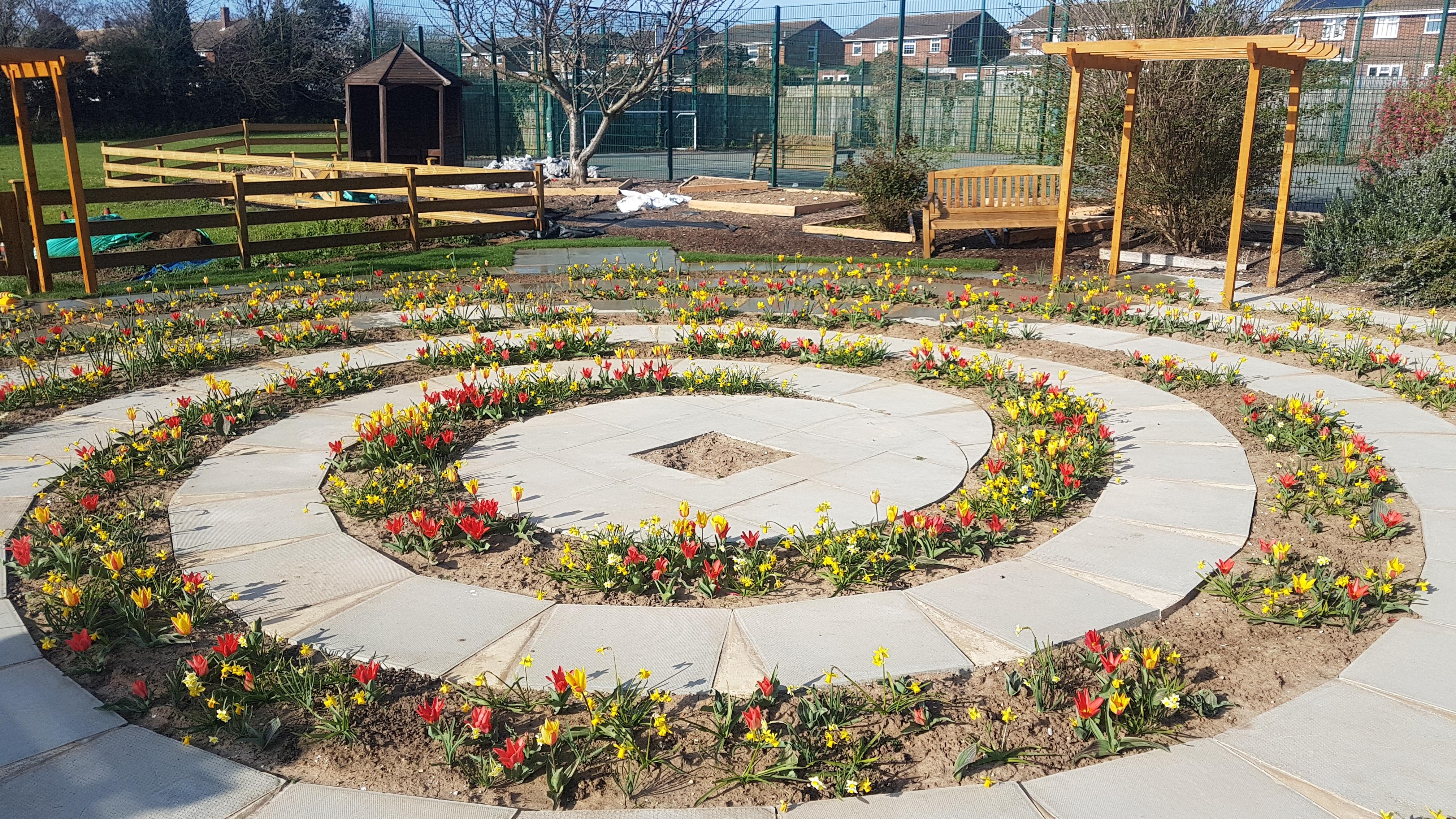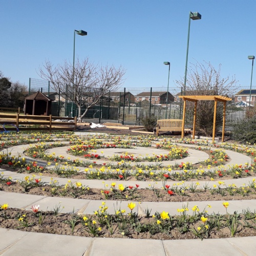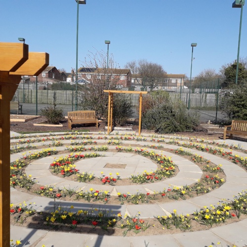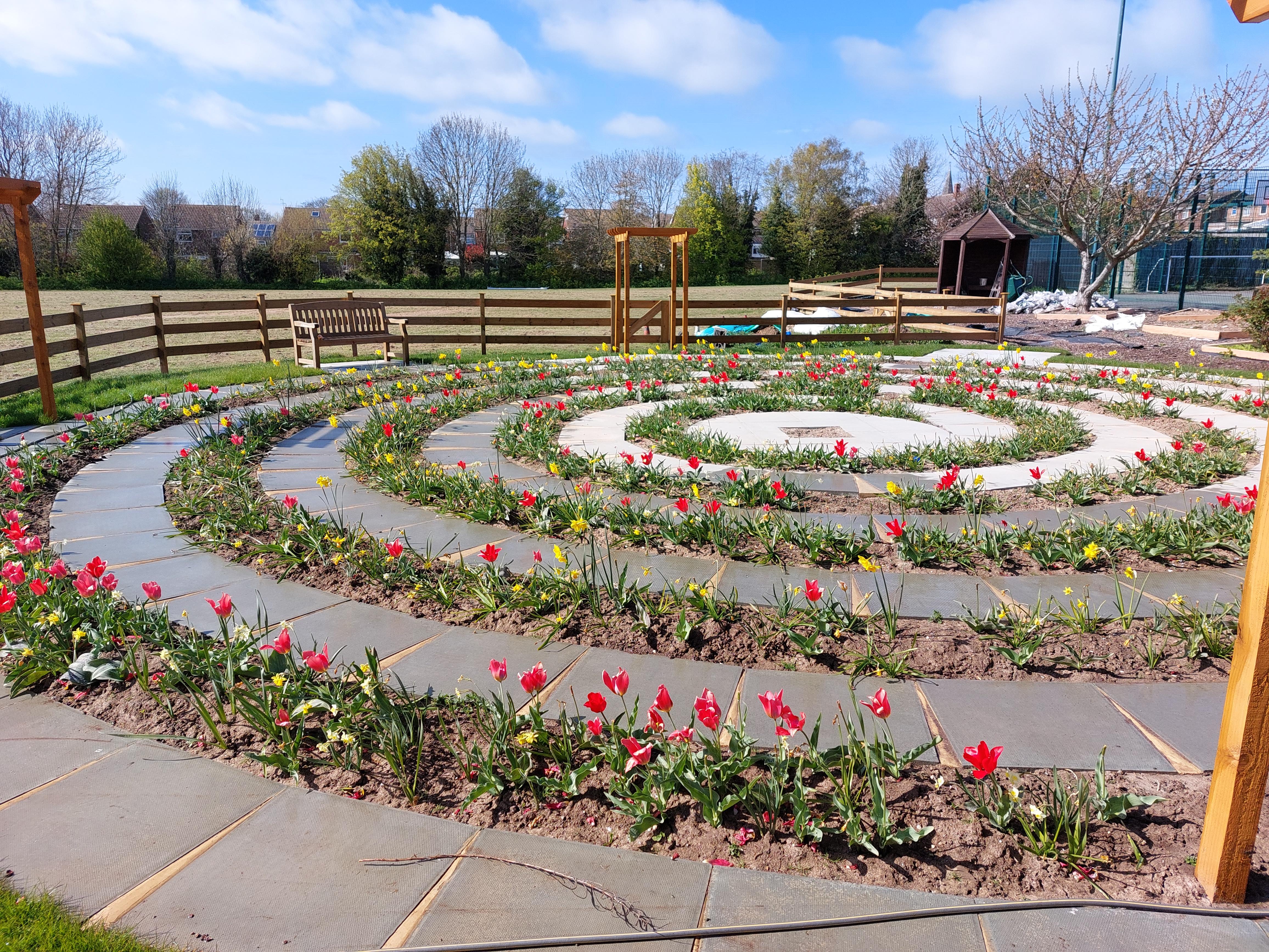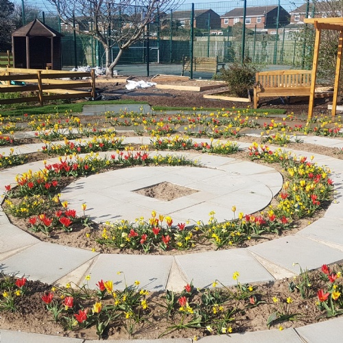 With all our wonderful indoor Prayer and Reflection Areas, we decided that we would like to build an outdoor area with a real Wow factor that would give our children, staff and visitors an area for peace, reflection and prayer. And so, the dream of a Peace Spiral was born. We held a number of fundraising events and work began on the Peace Spiral with Mr Drew, our Site Manager, doing the majority of work himself. Our photos below show the step by step construction of this beautiful area.