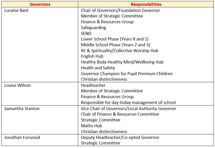 At Birchington CE Primary School, our Governing Body is responsible for the strategic direction of the school. This leaves the Headteacher and Senior Leaders responsible for day-to-day operation and management. Our Governors also play a key role in ensuring there is clarity of our Christian distinctiveness.